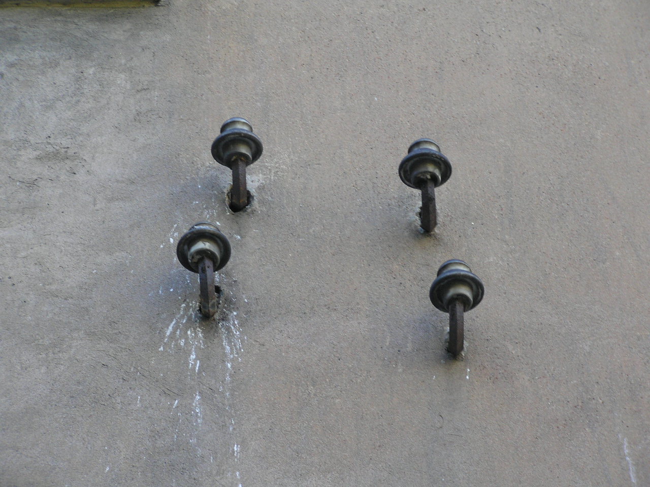 Izolatory na ścianie budynku przy ulicy Międzyborskiej 78 na Grochowie