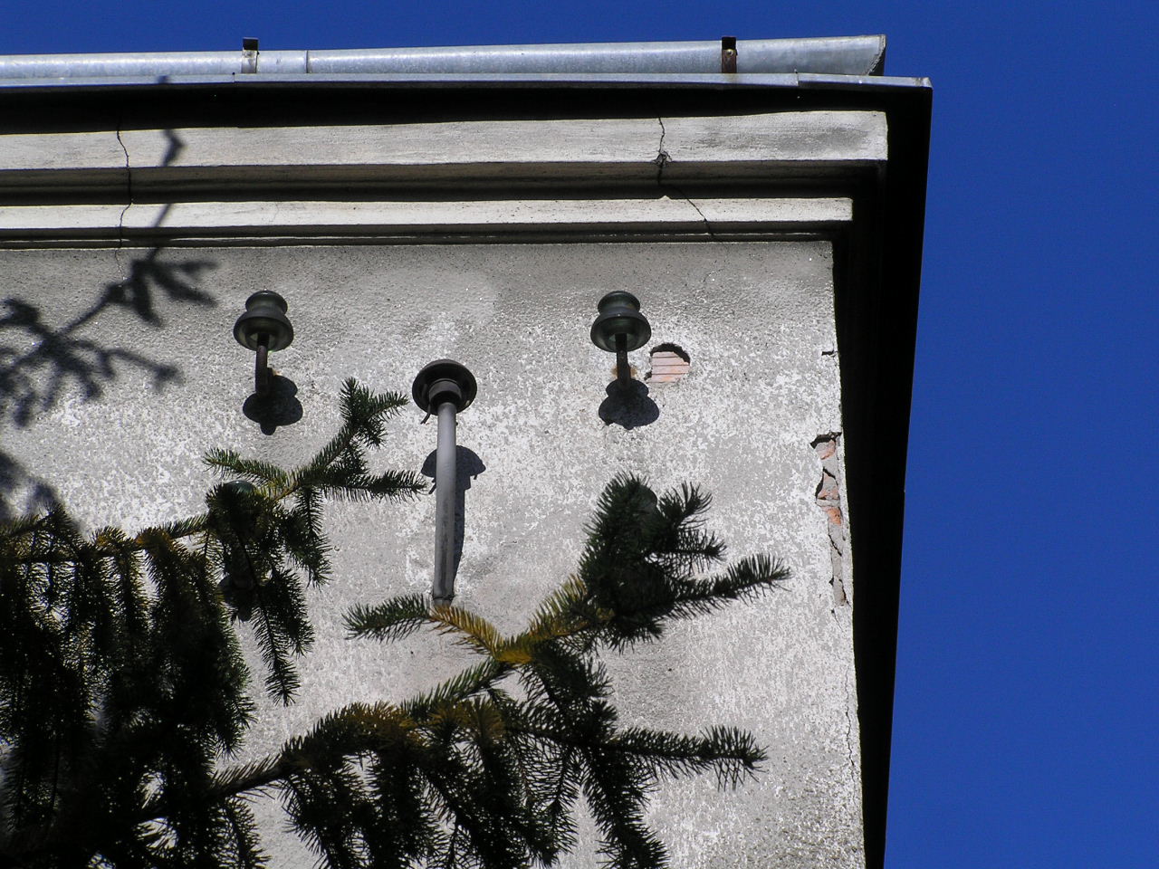 Izolatory na ścianie domu przy ulicy Suchodolskiej 13 na Grochowie