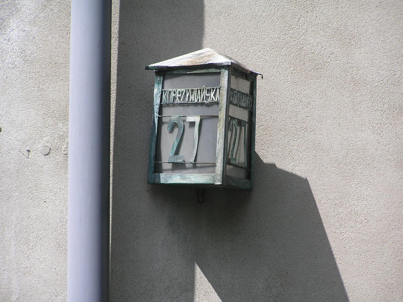 Latarenka adresowa na domu przy ulicy Koprzywiańskiej 27 na Grochowie