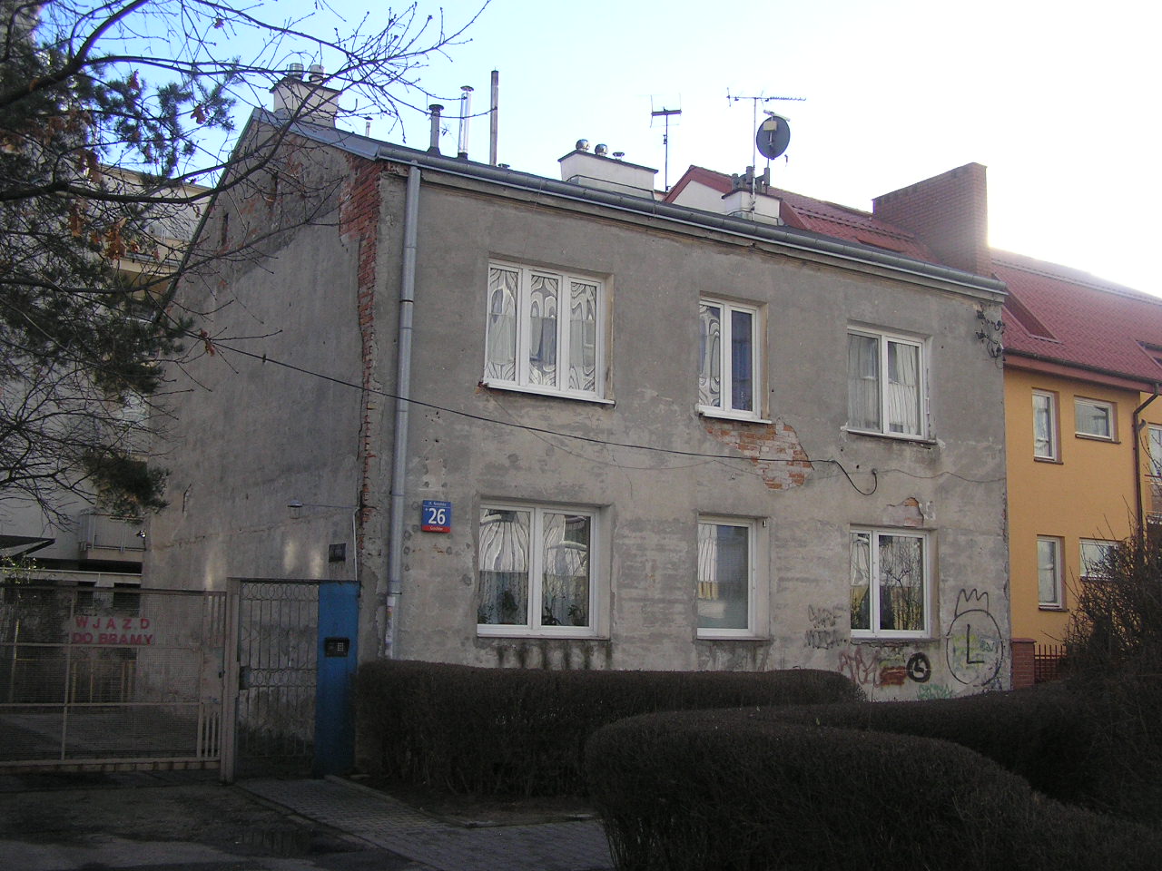 - Zachowana dawna tabliczka z nazwą ulicy.