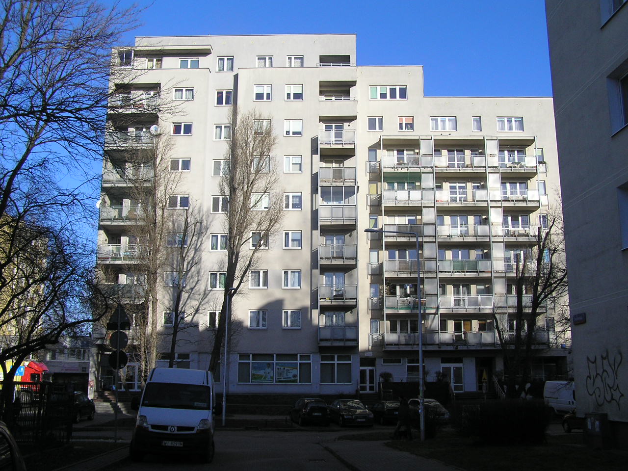 Budynek o zróżnicowanej ilości kondygnacji nadziemnych (od 6 do 8) w tym na parterze lokale usługowe i jedna kondygnacji podziemna-garaż został wzniesiony w latach 2003-2005 przez TBS Warszawa Południe. Posiada 85 lokali mieszkalnych oraz 4 lokale użytkowe w przyziemiu. W hali garażowej 49 miejsc postojowych.